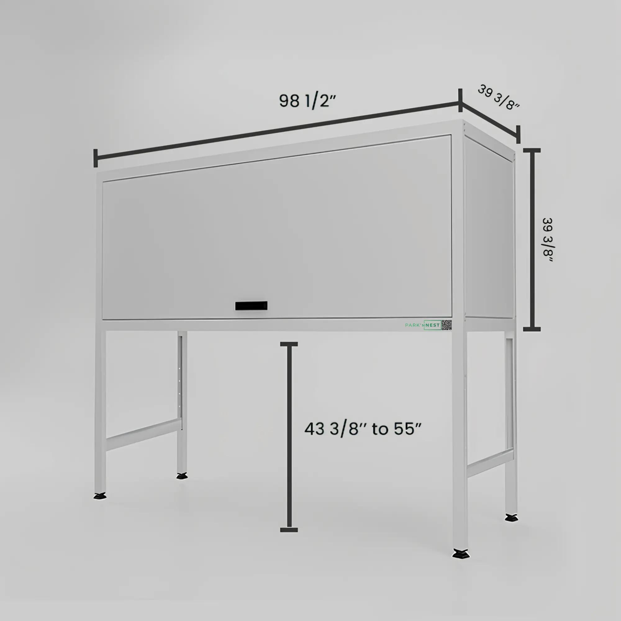 Built from durable powder coated steel and engineered for everyday use, The Nest keeps parking areas organized while improving safety and appearance. Ventilated panels allow airflow to keep the interior clean, dry, and fresh.